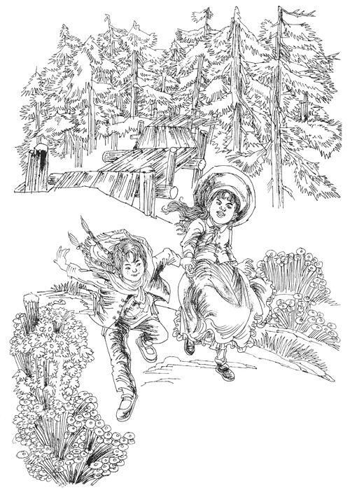 玛丽拉和安妮回家时,戴安娜一直送她到了小木桥。两个小姑娘手拉着手一起往前走。到了小溪边分手的时候,彼此再三保证第二天下午在一起玩。